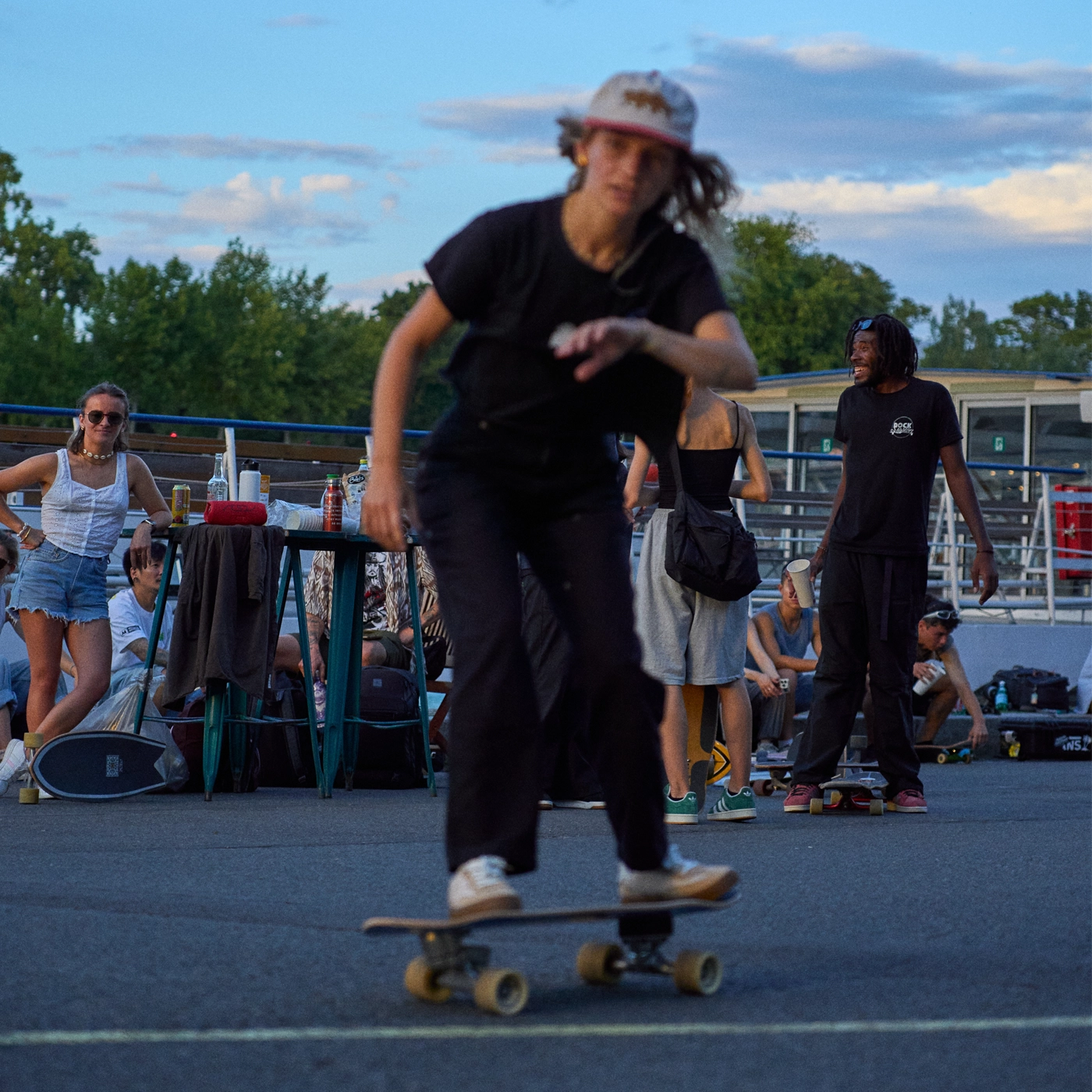 Às terças e quintas, esta margem do rio torna-se na tua segunda casa. Aqui, juntas-te aos Concrete Surf Riders — um grupo que acredita que o skate deve ser um espaço seguro e acolhedor para todos os géneros, níveis e idades. Outros grupos vão chegando, as rodas rolam sobre o cimento, e o cais transforma-se num verdadeiro caldeirão de estilos e histórias. O que mais vais adorar é a mistura: pessoas de todos os cantos a partilhar truques, risos e aquele pôr do sol parisiense perfeito sobre o Sena, enquanto o dia se dissolve em dourado.